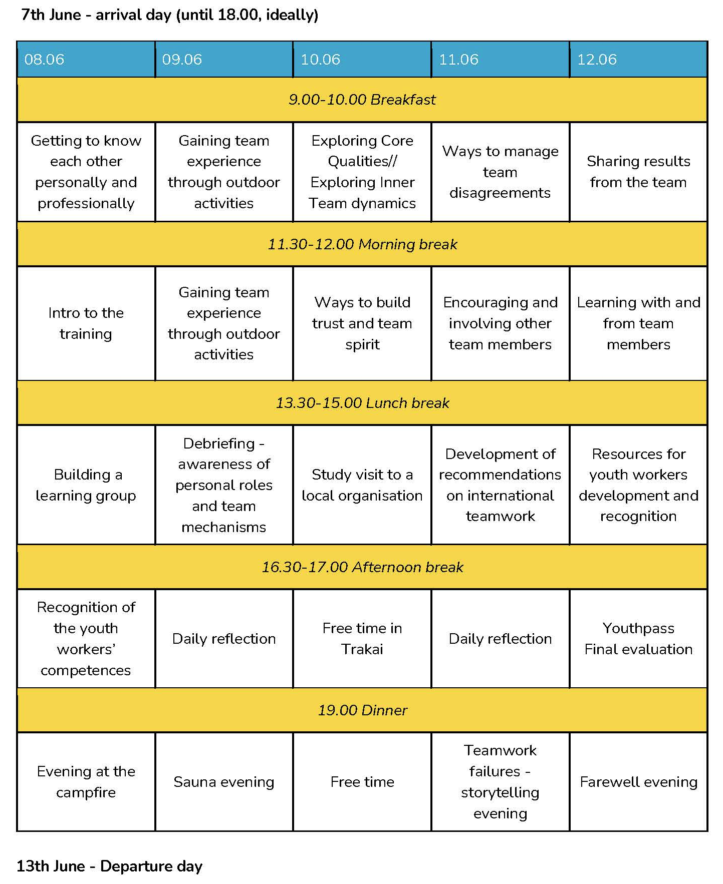 • Long-term development opportunity - participants willing to continue to develop their professional youth work competences will be invited to apply for the upcoming training courses on other competence areas.